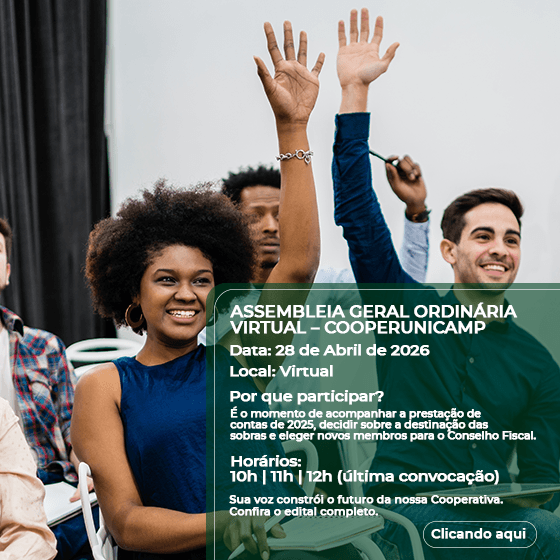 O Estatuto Social da CooperUnicamp define as diretrizes da nossa gestão, e as Assembleias Gerais são o espaço onde os associados decidem os rumos do nosso desenvolvimento. Podem se associar à CooperUnicamp os funcionários e docentes da Unicamp, bem como os funcionários da Funcamp. Junte-se a nós e faça parte de uma comunidade que cresce unida e fortalece cada um dos seus membros.